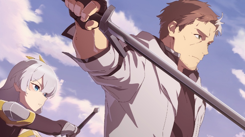 The anime adaptation began airing early in April, and the first four episodes are now available on Prime Video. Middle-aged swordsman Beryl Gardenant runs a dojo in a peaceful rural area, and is quite content to while away his years. One day a former student, Allucia, visits. She is now Commander of the Royal Order of Knights and invites him to become an instructor for all their brash young knights.