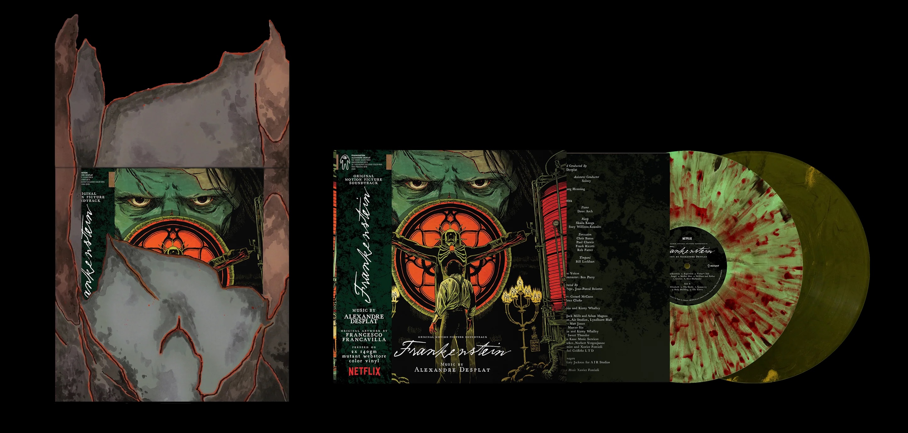 Lastly, Made by Mutant Records sent in their double vinyl presentation of Guillermo del Toro's Frankenstein. Wow! A gorgeous bi-fold cover housed in a bespoke die-cut skin slipcase. This is Alexandre Desplat's third collaboration with Guillermo del Toro; it is every bit as lush and evocative as it’s Academy Award nomination, and Gothic roots, would suggest. A grand score for a grand reimagining of the classic Frankenstein tale as one big redemptive arc. This evokes both the 1930’s-1940’s scores that formed the musical language of Frankenstein and looks ahead to the continued influence of Mary Shelley’s timeless story.